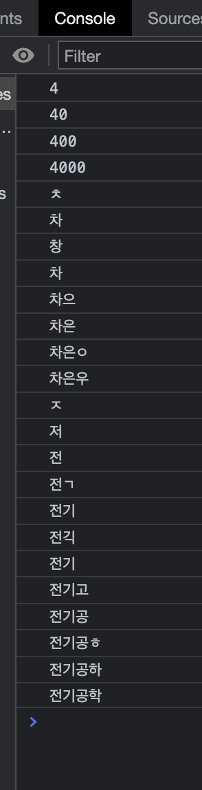 인풋에 값을 입력하면 콘솔창에서 이벤트실행 확인가능.