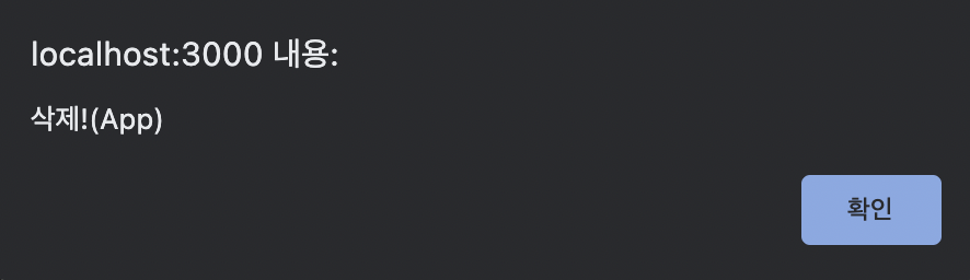 삭제 버튼 누르면 경고창에 삭제! (App) 까지 나오면 App.js 로 연결성공.