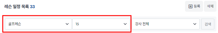 레슨변경시 시간option 변경 골프선택시 15분, 25분 PT선택시 60분