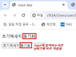 input에 입력한 문자와 p태그의 문자를 동기화함