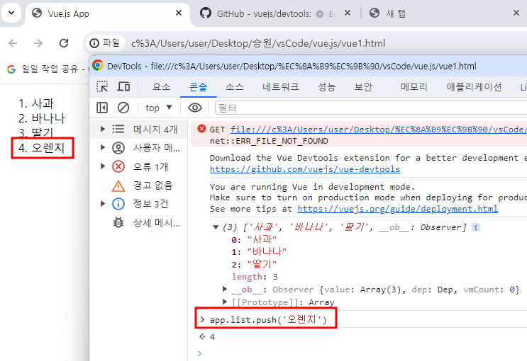 console.log(app.message) // app.data.message 가 아니라는 점 주의