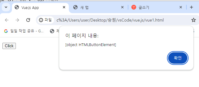- 'v-on' : addEventListener 또는 jQuery의 $(element).on 메서드와 비슷하게 작용함