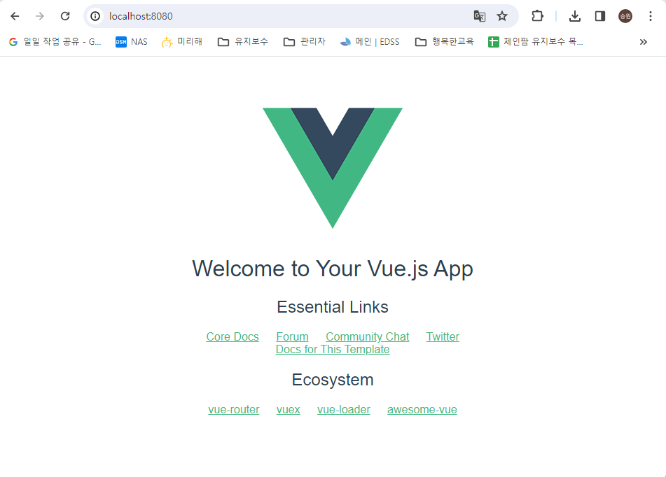 터미널에 npm run serve 하고 localhost:8080 가면 vue프로젝트 확인가능